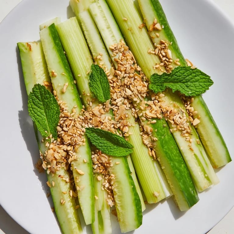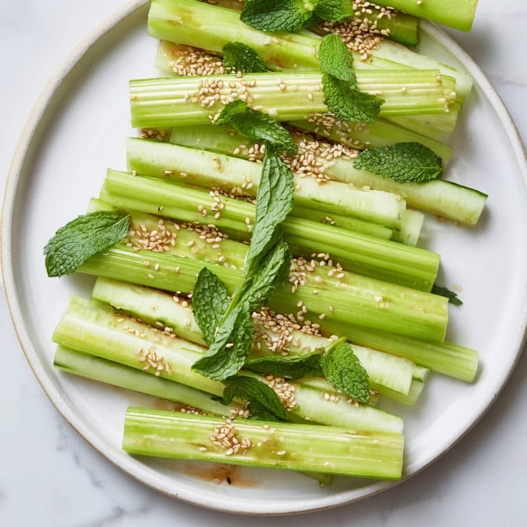 Save There's something almost meditative about arranging raw vegetables on a plate. I discovered this dish on a humid afternoon when my fridge held nothing but a pile of celery, cucumbers, and the lingering scent of rice vinegar. Instead of throwing together a sad snack, I decided to slow down—to cut with intention, to stack with purpose. The result was so quietly beautiful that I found myself just staring at it for a moment before anyone could eat it.