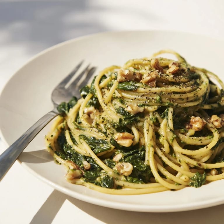 Save Standing in my kitchen on a rainy Tuesday, I watched the blender turn a handful of spinach and walnuts into something that looked like liquid emerald. The first time I made this sauce, I was honestly skeptical—could a handful of nuts and greens really replace my beloved Alfredo? One spoonful later, I was converting skeptics left and right. My husband took a bite, eyes wide, and asked if this was actually healthy. That's the beauty of this dish—it feels indulgent while being entirely plant-based.