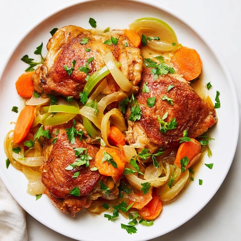 Save I started making this chicken on a rainy Sunday when I had a jar of sweet pickled onions sitting in the fridge for weeks. My mother-in-law had brought them from a farmers market, insisting they'd be perfect with something slow-cooked. I tossed them into a pot with chicken thighs, some broth, and a handful of pantry staples, then forgot about it for three hours. When I opened the oven, the whole house smelled like caramelized sweetness and savory warmth.