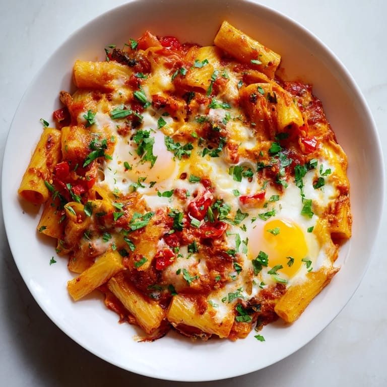 Save The first time I made shakshuka, it was supposed to be a traditional Middle Eastern dish—tomatoes, spices, eggs. But I had leftover pasta in the fridge and thought, why not combine them? That happy accident turned into something I've made dozens of times since. There's something magical about watching those eggs cook on top of a bubbling tomato-pasta base, the yolks just barely set while everything else smells like cumin and possibility.
