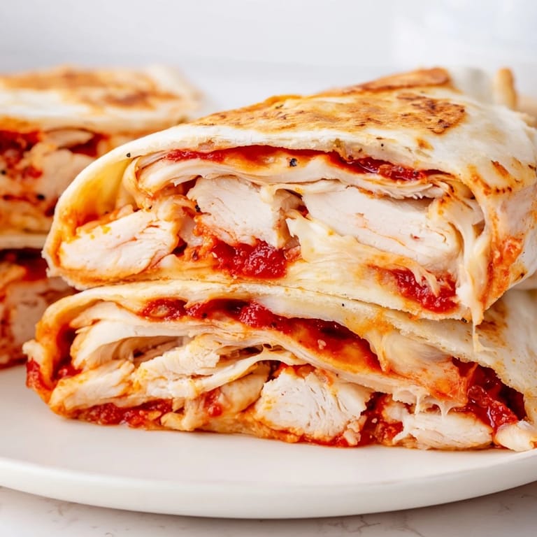 Save I stumbled on this wrap one weeknight when I had leftover rotisserie chicken and half a jar of marinara staring at me from the fridge. I wasn't in the mood for pasta, and a regular sandwich felt too plain. Then I remembered that folding trick I'd seen online and thought, why not turn a tortilla into a crispy little pizza pocket? The sizzle when it hit the pan told me I was onto something good.